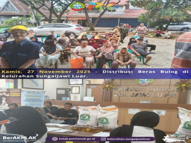 Kelurahan Sungai Jawi Luar melaksanakan Distribusi Beras Bulog pada Kamis, 27 November 2025, sebagai bagian dari program bantuan pangan yang ditujukan untuk masyarakat yang berhak... Selengkapnya